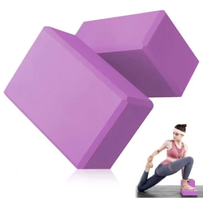 Yoga Blocks Set, LULUWA 2pcs EVA Foam Exercise Block with High Density & Non slip for Improving Strength Balance and Flexibility, Lightweight Pilates Brick Fitness (Purple, 23 x 15 7.7cm)