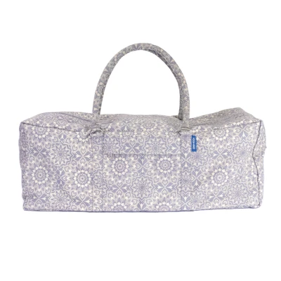 Introducing the Fitness Mad Mandala Yoga Bag – the ultimate solution for all your yoga and fitness essentials. Expertly crafted, this versatile yoga bag can hold a complete array of equipment, making it perfect for practitioners of Iyengar yoga. It has the capacity to store up to 4 yoga blocks, 1 yoga mat, 2 yoga bricks, 1 blanket, and 1 belt. Ideal for gym enthusiasts, it also accommodates a mat, towel, and extra clothing with ease.. Designed for convenience, this bag features long handles that allow for multiple carrying options – whether by hand, over the shoulder, or as a rucksack. Its extra-long zip opening makes it easy to fit larger items, including Pilates mats up to 15mm thick and extra-wide studio mats.. For added organization, the Fitness Mad Mandala Yoga Bag includes one external pocket and two interior pockets, perfect for storing your essentials during practice. Made from a stylish 100% cotton outer with a showerproof polyester lining, this yoga bag unites style, functionality, and durability to meet all your yoga and fitness needs.