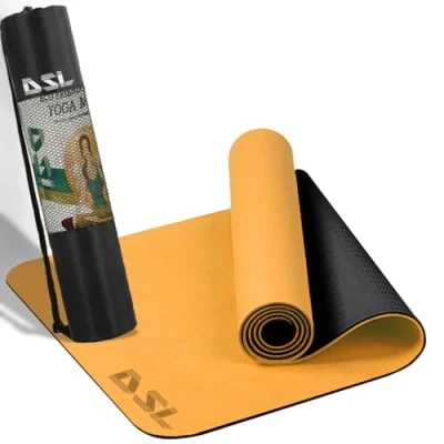 Amazon 🧘Yoga Mats - A tried and tested thickness of 6mm which strikes a perfect balance between stability and comfort. It's the ideal thickness to ensure stability (not too thick) and also excellent cushions (not too thin) to support yoga practice 🧘Non-slip Yoga Mat - The rippled design at the bottom of the yoga mat maximizes friction and provides greater connection with the floor and gives your superior grip; the grippy non-slip material with the texture at the top help prevent sliding and help aid balance while practising yoga 🧘TPE Yoga Mat - Embracing the latest Eco-friendly TPE material, our work out mat not only provide superior stability and sufficient comfort, they are also biodegradable and can be recycled 🧘Light Weight & Portable - Measures 183x61x0.6cm when laid out flat and can be rolled up to a compact size. It comes with an attachable carry strap which is perfect for travelling. It's water & sweat resistant and easy to clean 🧘Other Exercises - Perfect thickness for yoga of all levels, also great for other floor fitness exercises like mountain climbers, burpees and floor sprints etc 🧘Available Colours - A choice of contemporary colours which will adapt to your fitness equipment while suit your personality