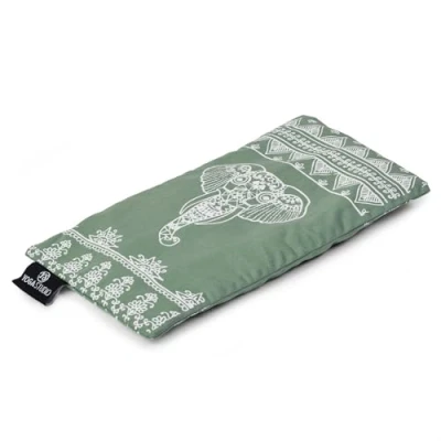 Yoga Studio Organic Aztec Elephant Eye Pillow 23cm x 12/13cm, Lavender & Linseed Scented for Tired Eyes, and Headaches (Sage Green Elephant)