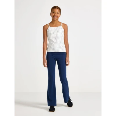 Yoga trousers in soft and stretchy cotton jersey with flared legs and elastic, foldable waist.