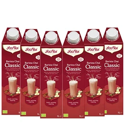 Yogi Tea Classic Chai Organic Herbal Tea, Naturally Caffeine Free, Blend of Cinnamon, Cardamom and Ginger, Just Add Milk, 6 x 1 L Cartons