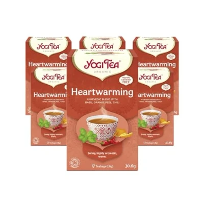 HERBAL TEA: An aromatic blend of basil, orange peel and chili creates this carefree experience. This tea is for everyone who carries a zest for life in their heart CAFFEINE FREE TEA: Naturally free from caffeine, this 100 percent organic blend is a wonderful introduction to herbal teas and those moving away from caffeine alternatives UNIQUE FLAVOUR: Sunny, warm, highly aromatic. That's what Yogi Tea's Heartwarming blend is all about. Take some me time out of your day to surround yourself with this zesty, spirited blend to feel a sense of wellbeing and peacefulness ORGANIC, ETHICAL, SUSTAINABLE: This tea is certified organic and free from flavours or additives. The shipping is CO2-neutral, the paper is FSC-certified and Yogi Tea supports social projects YOGI TEA: With their teas, a yogic wisdom on each tea tag and a yoga exercise on each pack, Yogi Tea provides inspiration to you every day and thus contributes to a more peaceful, healthy world full of mindfulness and happiness