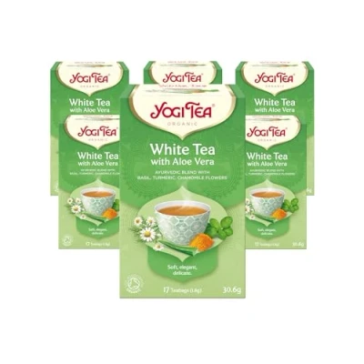 HERBAL TEA: A delicate blend of basil, turmeric and chamomile flowers creates this soft experience. This tea is for everyone seeking their inner glow WHITE TEA: A delicate embrace of 100 percent organic, high-quality white tea and fragrant herbs and spices. Flavours to make you glow from the inside out FRAGRANT FLAVOUR: Soft, elegant, delicate. That's what Yogi Tea's White Tea with Aloe Vera blend is all about. Take some me time out of your day to surround yourself with this delicate, smooth blend to experience a transfer of beauty, from tea to you ORGANIC, ETHICAL, SUSTAINABLE: This tea is certified organic and free from flavours or additives. The shipping is CO2-neutral, the paper is FSC-certified and Yogi Tea supports social projects YOGI TEA: With their teas, a yogic wisdom on each tea tag and a yoga exercise on each pack, Yogi Tea provides inspiration to you every day and thus contributes to a more peaceful, healthy world full of mindfulness and happiness