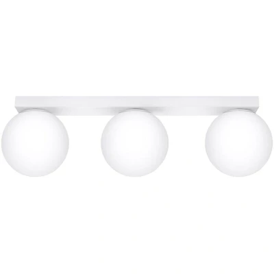 General description The YOLI ceiling lamp combines elegant simplicity with timeless classics, creating a visual effect that suits a variety of interiors. Available in two color versions - black and white - the design adapts perfectly to Scandinavian, modern, eclectic, loft, or industrial style spaces. The regular, spherical shape of the lampshade soothes the senses and serves as a perfect decorative addition to any room, making it suitable for the bedroom, living room, and dining room. YOLI can be easily adapted to the size of the room with different variants featuring one, two, three, four, or even six light points. Technical specifications Light source: G9, 3x max 8W LED Voltage: ~230V Frequency: 50Hz IP rating: IP20 Protection class: I Dimensions: 50 cm (length) x 12 cm (width) x 14.5 cm (height) Material: steel, glass Color: white Other information Light source is not included.