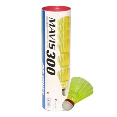 The Yonex Mavis 300 Yellow shuttlecocks have been skilfully designed by Yonex to re-create all the fundamentals of a conventional feather shuttlecock's flight and performance but in a much harder wearing plastic shuttle. The Yonex Mavis 300 is one of the best known and popular shuttlecocks that can be found on the market today. The shuttlecocks have a natural cork base and come in 2 tubes of 6 shuttles.