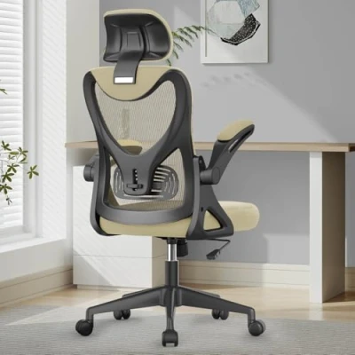 YONISEE Office Chair Ergonomic Desk with Lumbar Support Headrest Adjustable, Padded Flip up Armrests Comfy Seat Cushion High Back Executive Manager For Home