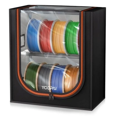 Upgraded Cover Design: This filament storage rack effectively prevent children and pets to avoid accidental ingestion and ensure safety. Keeping clean and tidy, maintain optimal condition, and improve the quality of printed models,came with 4 pack of desiccants,keep your filament organized Large Capacity & Efficient Storage : This 2-tier filament storage rack holds up to 12 standard 1kg spools (6 per tier), keeping your PLA, ABS, TPU, and PETG filaments neatly organized for smoother 3D printing workflow Iron Frame Support Design : The proven design of the connection of our filament rack ensures it is strong and easy to assemble. Our filament storage box also can carry at least 15KG (33LB) per layer Space-Saving : This storage rack is perfect for desktops, shelves, or under-table storage. Keep your workspace organized and clutter-free while maximizing efficiency Size & Range Of Use : This 3D printer filament dimensions are 11.11 inches * 9.84 inches * 16.98 inches. This 3d printer accessories can be used not only at home, but also widely in studios, home workshops, garages, workspaces, basements, living rooms, etc., to meet your 3D printing spool storage needs