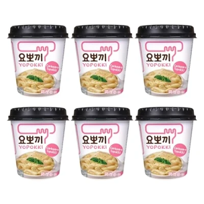 Yopokki Carbonara Topokki 6 x 120g Cup Pack Instant Chewy Korean Rice Cake Snack