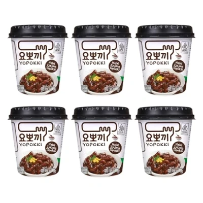 Yopokki Halal Jjajang Topokki 6 x 120g Cup Pack Instant Chewy Korean Rice Cake Snack