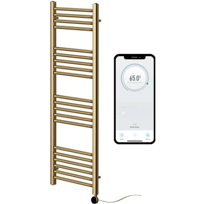 York Brushed Brass WiFi Controlled Electric Heated Straight Towel Rail 300mm w x 1200mm h