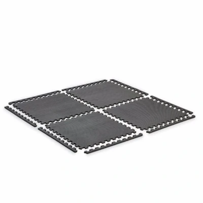 The York Fitness Floor Guards are perfect for protecting your floor when using weights, a bench or exercise bike and are great for providing a cushioned area for your body’s protection when exercising on the floor.. This set comprises four 60cm x 60cm interlocking durable foam tiles along with edging strips which can be added to provide a more finished appearance. With the edging strips attached the whole set measures 122cm x 122cm. As these non-slip floor guards are interlocking, it is easy to add more sets for larger equipment if needed.. Easy to assemble and measuring 13mm thick, they will not only protect you and your floor but will help muffle sound. They can be arranged in various shapes meaning they are adaptable to suit numerous needs and preferences.