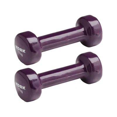 The York Vinyl Dipped 1kg Dumbbells in a delightful purple hue introduce a subtle form of resistance into your workout, which can contribute to improved fat burning and muscle toning. Offered as a pair, these dumbbells are designed to be approachable, safe, and comfortable, with an emphasis on accommodating smaller hands and providing a reduced level of resistance. Their soft vinyl coating, gentle yet effective, makes them an ideal selection for newcomers to weightlifting or individuals looking to incorporate a mild resistance component into their training regime.