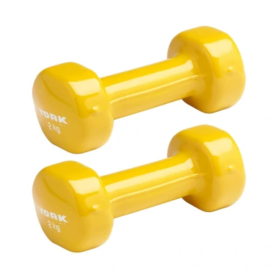 The York Vinyl Dipped 2kg Dumbbells in a vibrant yellow hue provide a gentle form of resistance to your workout routine, elevating the opportunity for enhanced fat burning and muscle toning. Sold as a pair, these dumbbells are intentionally crafted to offer a user-friendly, secure, and comfortable experience, with special attention paid to accommodating smaller hands and delivering a manageable level of resistance. Their soft vinyl coating, which is both gentle and efficient, makes them an outstanding option for individuals who are new to weightlifting or those aiming to incorporate a mild resistance component into their training programme.