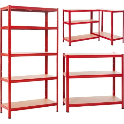 YORKING 5 Tier Adjustable Height Garage Shelving Unit Heavy Duty Steel Racking System, Boltless Assembly, for Tools, Storage, and Warehouse Use (Red,
