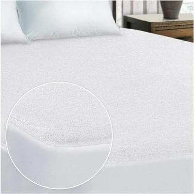 ULTIMATE WATERPROOF PROTECTION: Our mattress protector features a waterproof TPU backing that guards against spills, stains, and moisture, extending the life of your mattress. Perfect for families with kids or pets, it ensures your mattress stays perfect and dry. COMFORTABLY NOISELESS: The soft cotton terry surface allows air and heat to flow freely, providing a quiet, breathable, and comfortable sleeping experience. The flexible, high-quality waterproof membrane ensures no crinkly noises disturb your sleep. BREATHABLE AND SOFT: Made from 100% Polyester terry surface, our mattress protector offers exceptional breathability and softness. It helps regulate body temperature, keeping you cool in summer and warm in winter for a restful night's sleep. EASY FIT WITH DEEP POCKETS: Designed with a Corner elastic skirt made of durable mesh fabric, our mattress protector fits mattresses from 25cm to 30cm deep. This ensures a secure, snug fit, preventing any shifting or bunching during the night for consistent comfort. ENHANCED DURABILITY: Constructed with premium materials, this mattress protector is designed to withstand daily wear and tear. It's machine washable, do not tumble dry, making it simple to maintain a clean and hygienic sleeping environment, perfect for busy households.