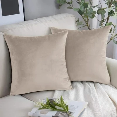YORKSHIRE BEDDING Cushion Covers 45 x (Pack of 2) Decorative Velvet Square Throw Pillow Cases Luxury Soft Beige Cover for Sofa Couch Bedroom with Invisible Zipper 18x18 Inches