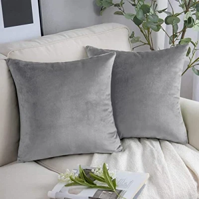 YORKSHIRE BEDDING Cushion Covers 45 x (Pack of 2) Velvet Square Throw Pillow Cases Decorative Soft Cover for Sofa Couch Bedroom with Invisible Zipper (Silver, 18 Inch (Plain))