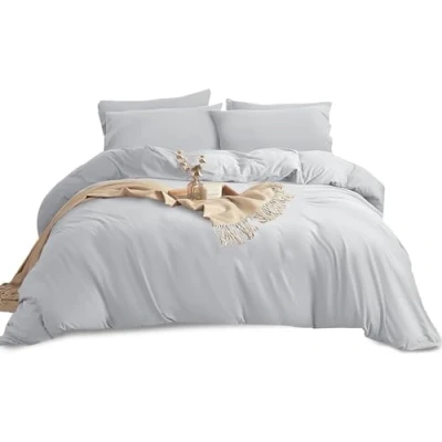 YORKSHIRE BEDDING Duvet Cover Sets Soft & Breathable Brushed Microfibre Plain Double with Pillow cases Button Closure Quilt Bed Set Silver