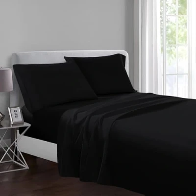 Yorkshire Bedding Flat Sheets Double 100% Egyptian Cotton Bed Sheet 200 Thread Count Breathable and Fade Resistant Hotel Quality Black (225 cm x 275 cm)