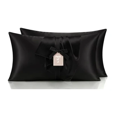 Yorkshire Bedding Satin Black Pillow Cases 2 Pack Silky Soft Pillowcases for Hair and Skin Care with Envelope Closure, Standard Size (50 x 75 cm) Covers