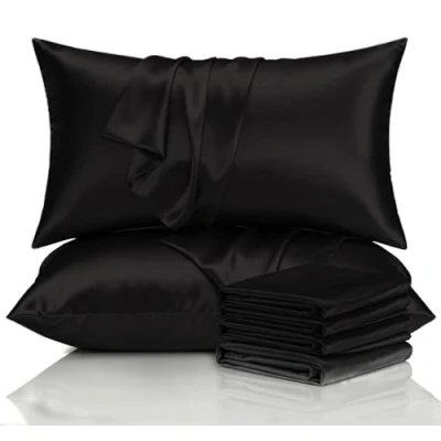 Yorkshire Bedding Satin Black Pillow Cases 6 Pack Silky Soft Pillowcases for Hair and Skin Care with Envelope Closure, Standard Size (50 x 75 cm) Covers