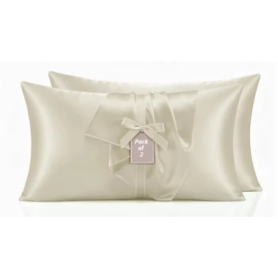 Yorkshire Bedding Satin Ivory Pillow Cases 2 Pack Silky Soft Pillowcases for Hair and Skin Care with Envelope Closure, Standard Size (50 x 75 cm) Covers
