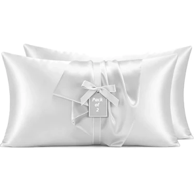 Yorkshire Bedding Satin White Pillow Cases 2 Pack Silky Soft Pillowcases for Hair and Skin Care with Envelope Closure, Standard Size (50 x 75 cm) Covers
