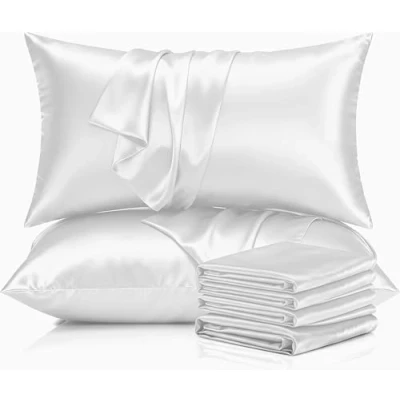 Yorkshire Bedding Satin White Pillow Cases 6 Pack Silky Soft Pillowcases for Hair and Skin Care with Envelope Closure, Standard Size (50 x 75 cm) Covers