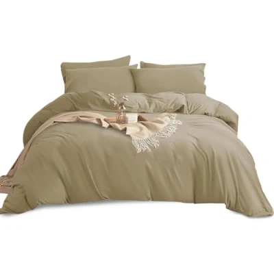 YORKSHIRE BEDDING Super King Size Duvet Set Soft & Breathable Brushed Microfibre Plain Cover with Pillow cases Button Closure Quilt Bed Beige