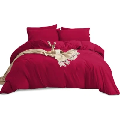 YORKSHIRE BEDDING Super King Size Duvet Set Soft & Breathable Brushed Microfibre Plain Cover with Pillow cases Button Closure Quilt Bed Burgundy
