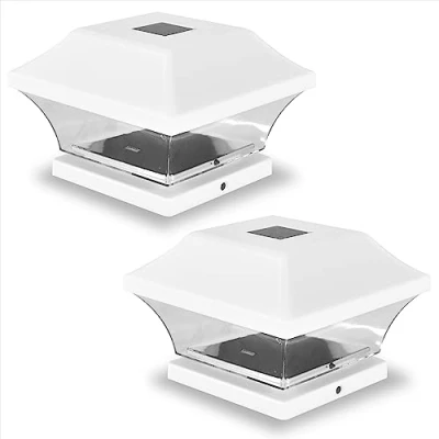 Yorkshire Homeware 2 Pcs Solar LED Post Lights Outdoor Garden Powered Deck Cap Square,Patio, Fence White