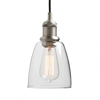 The Bell Glass Pendant shade balances elegance with industrialism for a timelessly beautiful finish to your room. This charming shade looks incredible when added to your existing light fitting to easily achieve that bespoke, designed look The flex can be shortened at the point of installation for use in rooms with lower ceilings, this would be great for lighting over dining room tables or kitchen islands. It would also look great in any contemporary living space Light shade: 14cm/5.5”, Ceiling Rose diameter: 12cm/4.7”, Black cord wire is 200cm/78.7”,It also features On/OFF Switch Design on the light holder This ceiling pendant light is suitable for use with a normal wall siwtch or dimmer switch providing the bulb used is also dimmable Suitable for E27 SCREW Light bulbs, LED bulbs Or Incandescent bulbs (NOT include Light bulbs)