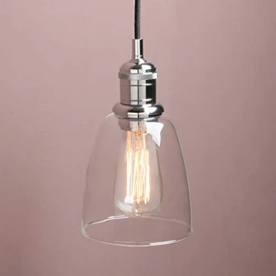 The @@@jxvO4cPKItPAAs8KCI2qCjdqOpklsCml@@@ Glass Pendant shade balances elegance with industrialism for a timelessly beautiful finish to your room. This charming shade looks incredible when added to your existing light fitting to easily achieve that bespoke, designed look. The flex can be shortened at the point of installation for use in rooms with lower ceilings, this would be great for lighting over dining room tables or kitchen islands. It would also look great in any contemporary living space. Light shade: 14cm/5.5”, Ceiling Rose diameter: 12cm/4.7”, Black cord wire is 200cm/78.7”,It also features On/OFF Switch Design on the light holder This ceiling pendant light is suitable for use with a normal wall siwtch or dimmer switch providing the bulb used is also dimmable Suitable for E27 SCREW Light bulbs, LED bulbs Or Incandescent bulbs (NOT include Light bulbs)