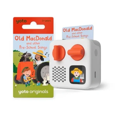 OLD MACDONALD & OTHER PRE-SCHOOL SONGS BUNDLE: Comes with a Yoto Mini (2024 Edition) and a single audiobook card containing a collection of some of the most loved children's songs. EASY TO SET UP & USE: Simply pop an audio card into the Mini to play & remove to stop. Alternatively, control the device via the free App! KID-FRIENDLY WITH PARENTAL CONTROL: Enjoy up to 14 hours of screen-free entertainment per charge. All content is safe & has been specially chosen & created with children in mind. No cameras. No mics. No ads. MULTI-PURPOSE: Features a pixel display to bring the audio to life, play sleep sounds, use as a bedtime storyteller, an alarm clock with OK-to-wake function, a portable Bluetooth speaker or use with headphones! CONTENT THAT GROWS WITH KIDS' MINDS: Explore 1000+ cards of bestselling novels, music, fun activities, free podcasts, radio, soundscapes, useful timers or even create content with a Make Your Own card!, Manufacturer: YOTO