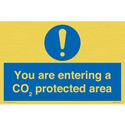 M001 : General mandatory action This sign is made from vinyl gold sticker Gold metal effect sticker for flat, clean surfaces. Not for rough, plastic, or dusty surfaces. A4 landscape Sign Text: You are entering a COâ‚‚ protected area