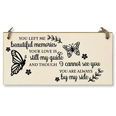 You Left Me Beautiful Memories Always By My Side Sympathy Memory Handmade Wooden Hanging Wall Plaque Sentimental Gift
