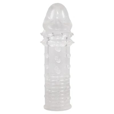 The transparent penis sleeve with its strong glans provides improved stimulation for HIM and HER Adds more than 4 cm to penis length! Total length approx. 16 cm, penetration depth approx. 11.5 cm Outer ø 2.5 - 4 cm, inner ø 2.5 cm, slightly elastic Material: TPE, free of phthalates according to EU regulation REACH