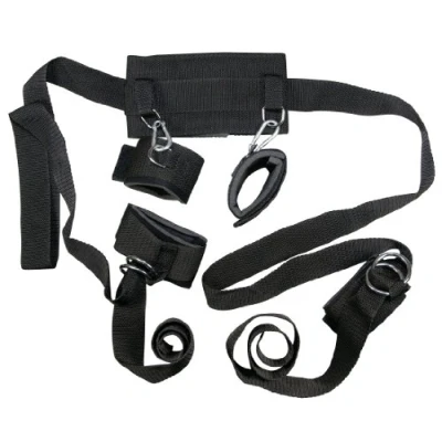 All-purpose bondage set connects neck, wrists and ankles together Made of polypropylene with velcro and chrome hooks Cuffs are padded and equipped with adjustable velcro fasteners Hard and ruthless, soft and naughty Unisex Product