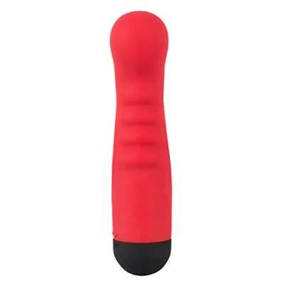 Vibrator with slightly curved, thickened tip and ribbed shaft. 10 vibration modes. Red. Total length 16.5 cm, insertion depth 14 cm, diameter 3-3.8 cm. Material: Silicone with PU coating, phthalate-free according to EU regulation REACH. Please order batteries separately: 2 x Micro/AAA. Red. Total length 16.5 cm, insertion depth 14 cm, diameter 3-3.8 cm.