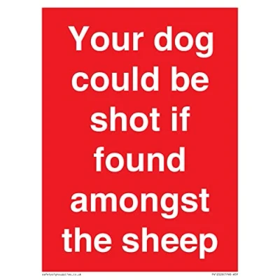 No Symbol This sign is made from vinyl / sticker Air Release vinyl makes it easy to stick to flat, clean surfaces without bubbles. Not for rough, plastic or dusty surfaces. A5 portrait Sign Text: Your dog could be shot if found amongst the sheep