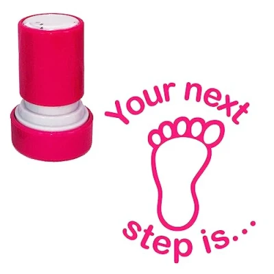Your Next Step is... Teacher Stamp. 22mm, Reinkable Self Inking Pink Ink^