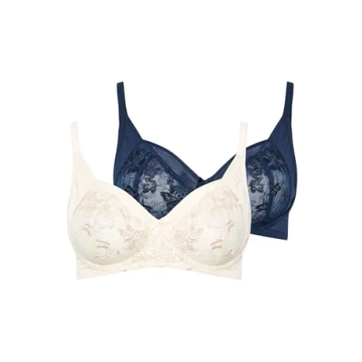 Yours 2 Pack Blue & White Floral Embroidered Underwired Bras Women's Plus Size Curve