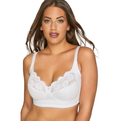 Yours Cotton Lace Trim Non Padded Wired Bralette Women's Plus Size Curve White
