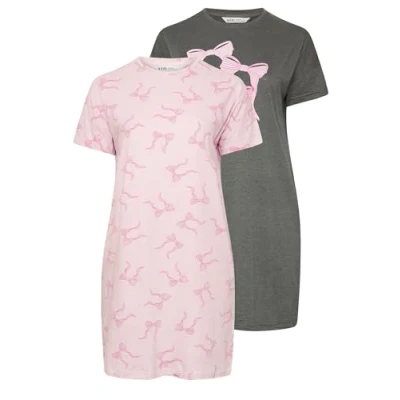 Yours Curve 2 Pack & Pink Bow Print Nightdresses Women's Plus Size