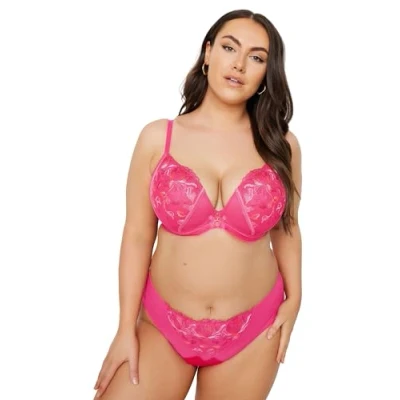 Introduce pretty florals to your lingerie collection with this new-in Yours Curve padded plunge bra. Made from a comfortable woven material, it features floral detailing, wired cups for all-day support, adjustable straps and a hook and eye fastening. Pair with matching briefs for a pretty set you'll love this season! Yours Clothing is a British based brand, and the go-to destination for the latest on-trend plus size clothing designed to fit curves in UK sizes 14-40. We lead the way when it comes to plus size clothing that fits and flatters, making fashion that fits and not fashion to fit into. Adjustable straps and hook and eye fastening. Plus size women's padded bra. Model is 5'10.5"/178cm and size UK 16/EU 44.