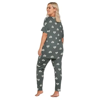 Yours Curve Heart Print Pyjama Set Women's Plus Size Grey