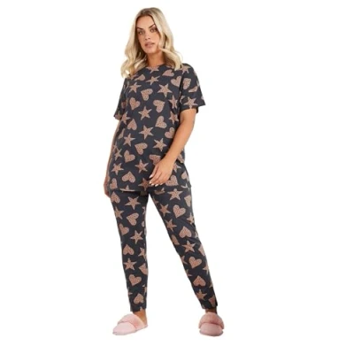 Get comfy this season with this leopard print pyjama set. Made from a comfortable cotton fabric, it features short sleeves, a heart and star design, a crew neckline and bottoms with an elasticated waistband. Pair with slippers or fluffy socks to complete the look. Yours Clothing is a British based brand, and the go-to destination for the latest on-trend plus size clothing designed to fit curves in UK sizes 14-40. We lead the way when it comes to plus size clothing that fits and flatters, making fashion that fits and not fashion to fit into. Short sleeves and crew neckline. Length from (approx): 84cm/33" Plus size leopard pyjama set. Model is 5' 9.5" / 176.53 cm and size UK 16/EU 44. You can't go wrong with a new pyjama set!