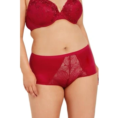Yours Curve Satin Lace Detail Briefs Women's Plus Size Red