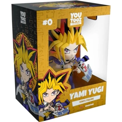 ‘It’s time to duel’ Yami Yugi defends his title as King of Games with his Youtooz debut At 4.8 inches tall, his black and maroon hair reaches up into chunky points while his iconic spiked fringe fans out in thick strands above his angular eyes and determined smile With his trusty Dark Magician card held between the fingers of his right hand, he prepares to summon it with the grey and red duel disk attached to his left arm The blue jacket draped over his shoulders blows out in wide ruffles and sits over the tight black singlet and blue pants he wears, while the Millennium Puzzle hangs around his neck by a thick silver chain, Manufacturer: Youtooz